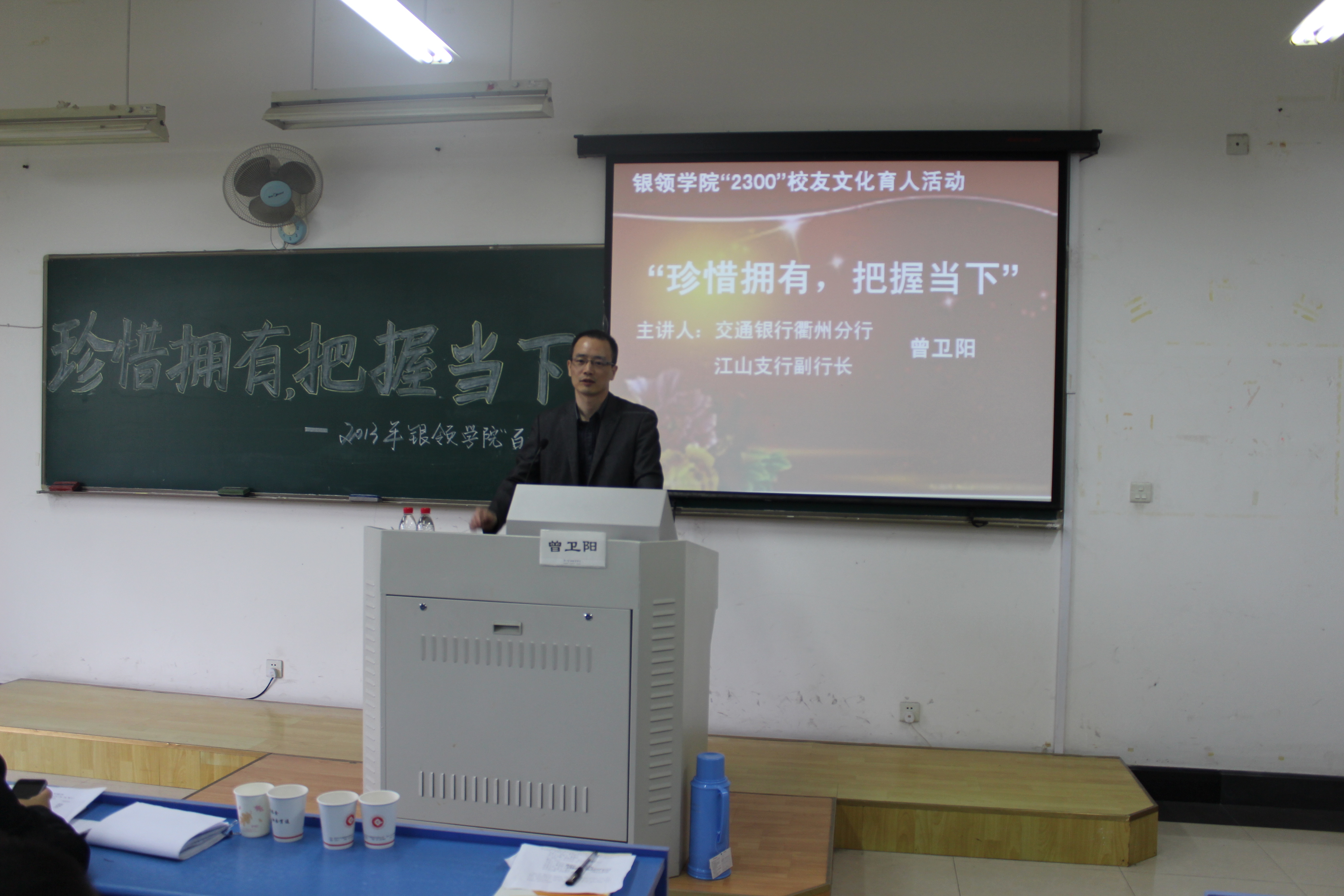 曾卫阳首先代表全体9122班同学对母校、老师的辛勤栽培和谆谆教导表示衷心的感谢。随后,曾卫阳结合自己的工作经历和体会,通过具体生动的案例,从学习、吃苦、自信、机会、思考和心态等六个方面谈了自己的感想和感悟,希望学弟学妹们加强学习,学会吃苦,增强自信,抓住机会,勤于思考和调整心态。这看似简单的24个字,蕴含了曾卫阳员工对生活经历和工作经验的总结,是带给银领学子的一份宝贵的精神财富。交流会上,曾卫阳还就同学们重点关注的实习和工作中会遇到的一些问题进行了深入的互动交流。