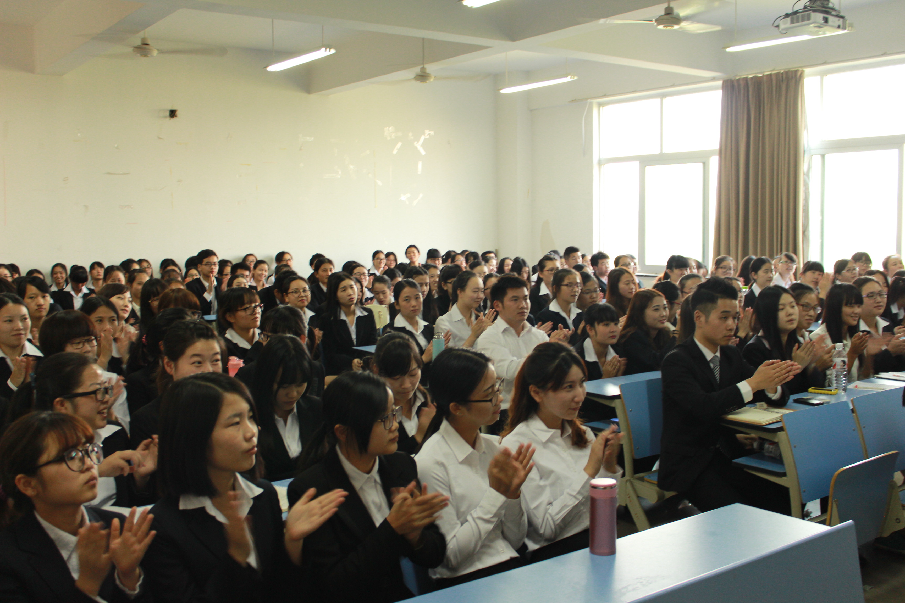 袁鹰行长通过职业发展的亲身经历和切身体会,结合理论与实际,分认真做事,钻研业务,保持激情,遵守规则,注重个人修养、尊重客户,服从领导,团结同事,保守秘密,严格守信,乐于奉献,乐观自信、展现自我,敢于担当,创新思维等十三个部分,与同学们进行了经验分享和互动交流,现场不时爆发出热烈的掌声。