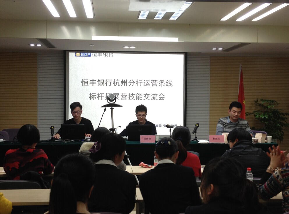 2015年1月14日,应恒丰银行杭州分行邀请,云顶国际vip.888职业技能教研室主任牟君清老师带领苏传桢、钱升块、林佳滨等三位同学参加该行运营条线标杆拓展营职业技能交流。三位同学在台上分别展示了单字输入、传票输入和多指点钞、单指点钞四个项目,“指尖如飞、我快谁追”的技能展示展现了公司员工高超的技能水平和良好的精神风貌,赢得现场观众们热烈的掌声和由衷的赞叹!展示结束后,三位同学先后与恒丰银行杭州分行的技能高手们进行同台竞技,并以绝对的优势获胜,凸显了公司“百名技能尖子培养”的优秀成效。最后,同学们与恒丰银行杭州分行的员工从练习方法、练习进度、练习强度、练习工具、操作规范等方面进行技能经验现场交流,气氛非常热烈。
