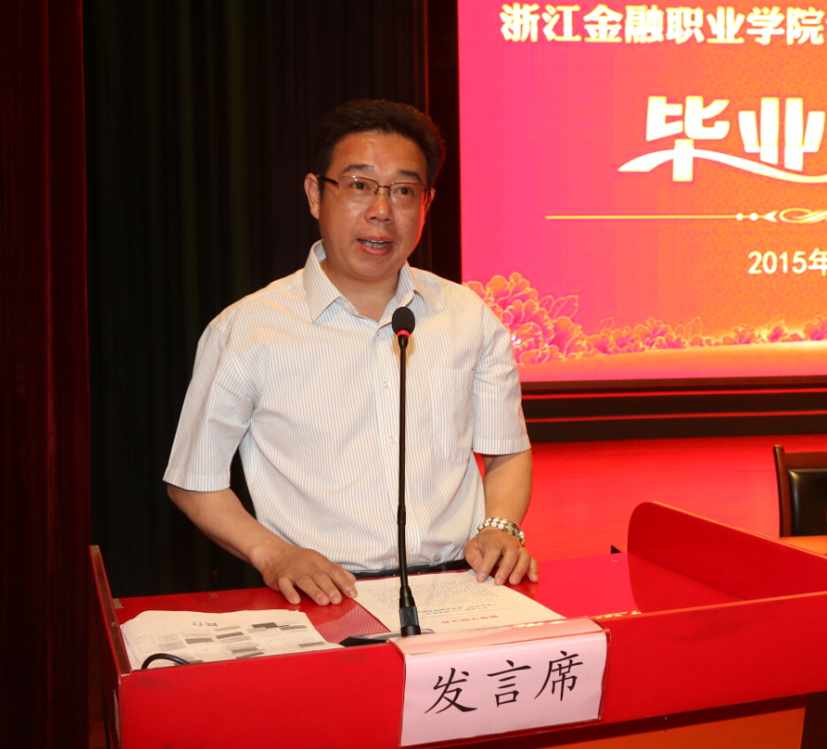 毕业典礼上,何邦会宣读了“长运安信”奖学金获奖者名单,主席台领导为获奖的同学颁奖。吕虹老师代表教师发言,表达了对毕业生的关怀和祝福之情。宁波银行订单班蔡梦洁同学代表2015届毕业生发言,感谢母校的培养,祝福母校的发展。最后,2015届订单班全体同学向母校40周年校庆献礼,向浙江金融教育基金会捐出了5168元,象征母校和我的发展“一路顺利”。