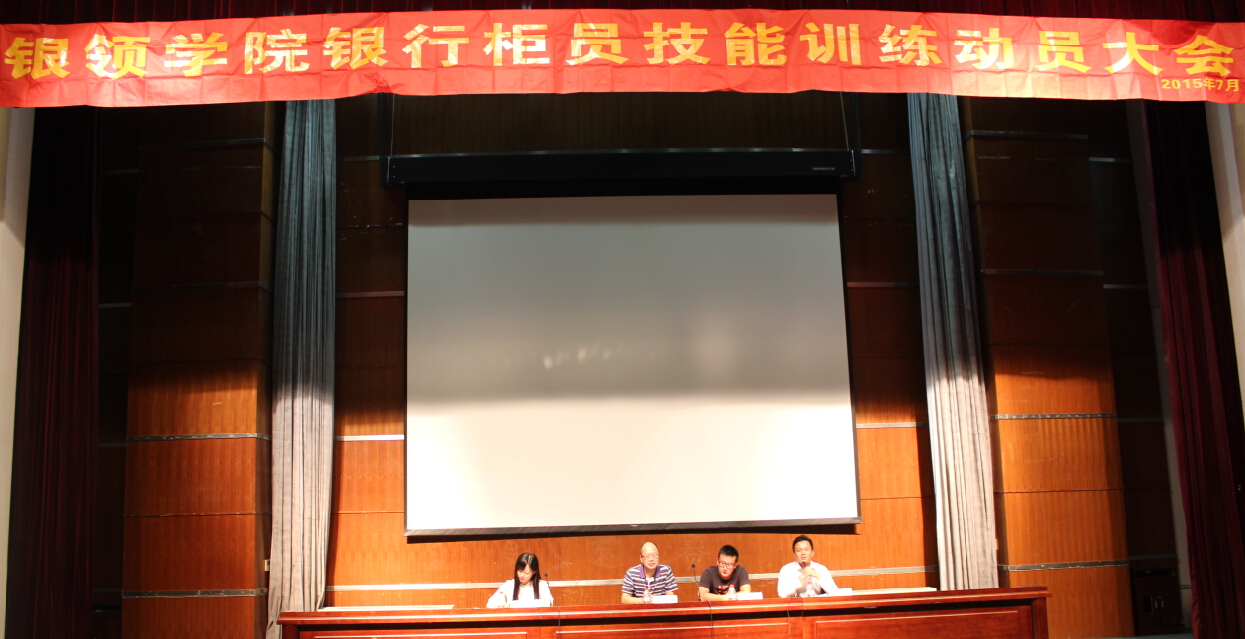 为进一步树立职业化教育理念,明确学习目标,提高云顶国际vip.888银行柜员员工的综合素质以及技能水平,云顶国际vip.888于2015年7月4日晚7点在明理报告厅举行了银行柜员技能训练动员大会。参加本次动员大会嘉宾的有云顶国际vip.888党总支书记、副经理王祝华,云顶国际vip.8882013届毕业生李凯,2015届毕业生潘晨以及500多名云顶国际vip.8882016届银行柜员订单班员工。大会由云顶国际vip.888辅导员章甜甜主持。