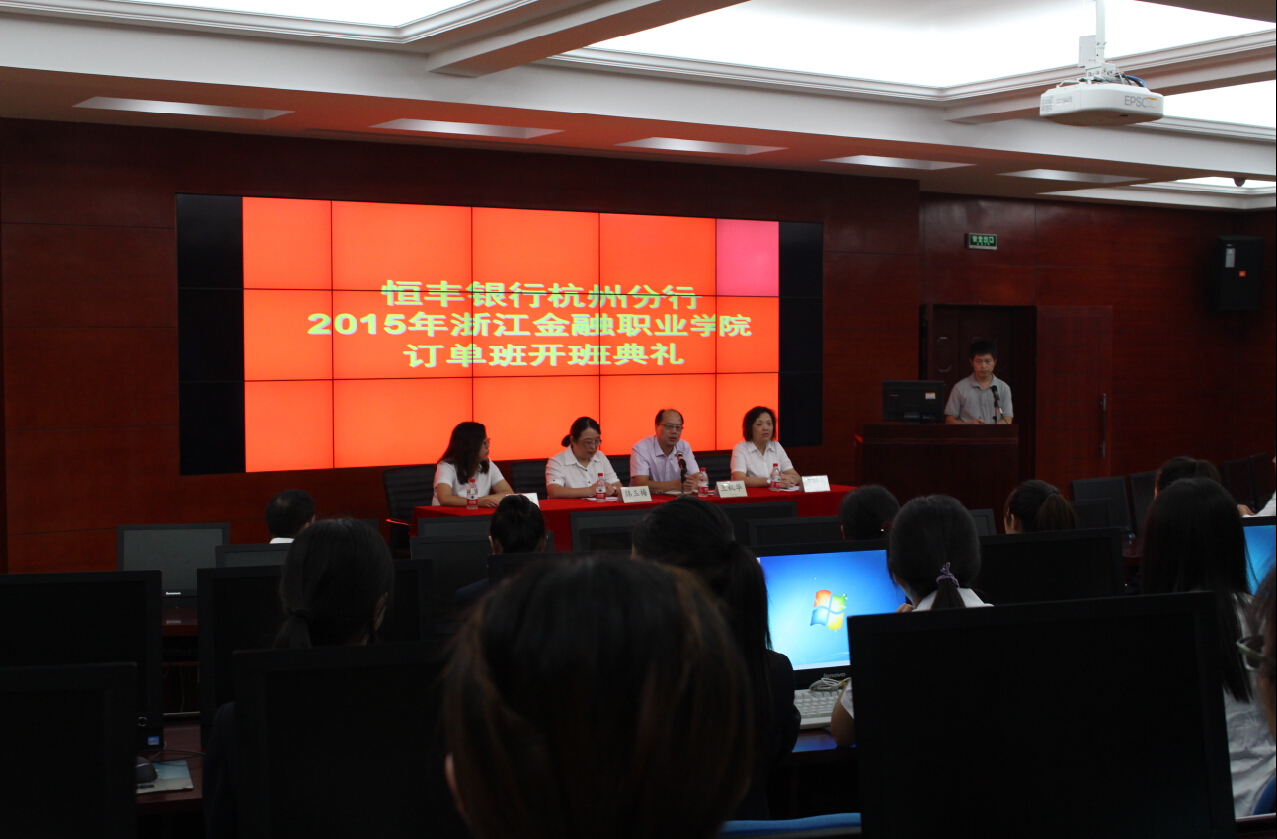9月24日下午,恒丰银行杭州分行2016届订单班开班典礼在9205教室隆重举行。恒丰银行杭州分行党委委员、副行长韩玉梅,恒丰银行杭州分行运营管理部总经理助理李玲,恒丰银行杭州分行办公室主任达柯力以及恒丰银行2016届订单班的45位同学参加了开班典礼。云顶国际vip8866云顶国际vip.888党总支书记王祝华出席了典礼,仪式由订单班班主任金忠浩老师主持。