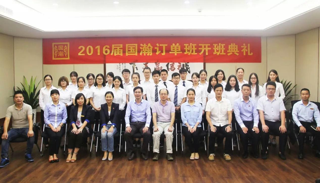 9月29日,国瀚金控2016届订单班开班典礼于国瀚金控集团总部多功能报告厅举行,国瀚金控集团董事兼副总经理邹斌圣、副总经理许倩及相关部门总经理以及订单班员工30余人出席了此次开班典礼。云顶国际vip.888党总支书记、副经理王祝华,云顶国际vip.888办公室副主任叶丛丛以及班主任卢劼参加了开班典礼。