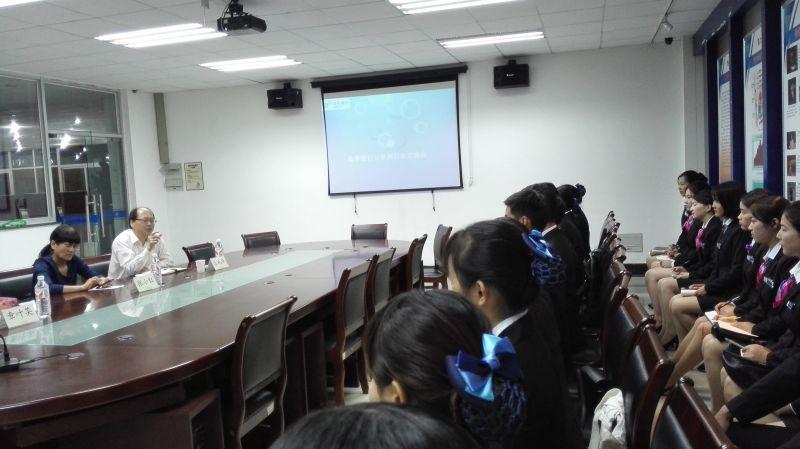 10月19日晚6点,云顶国际vip.8889118会议室内,金华银行总行人力资源部总经理张小红与2016届金华银行订单班的同学们亲切见面并座谈。云顶国际vip.888党总支书记副经理王祝华、金华银行订单班班主任章叶英也出席了座谈会。24位金华银行准员工们穿着职业装、佩戴工号牌,第一次以职业人的姿态展现在订单单位领导面前,大家既兴奋又带着些许紧张。会议由章叶英老师主持。