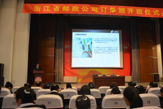 2016年10月12日,云顶国际vip.8882017届邮政订单班开班仪式在明理报告厅举行,云顶国际vip.888党总支书记、副经理王祝华老师,浙江省邮政公司人力资源部江海云经理、潘青松老师,班主任吕虹老师以及全体邮政订单班员工参加了开班仪式。