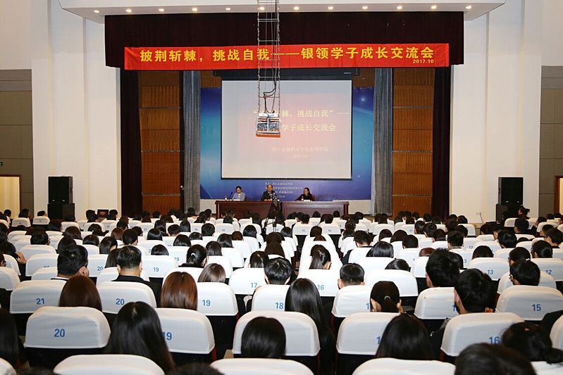 无负今日,勿忘初心,挑战自我,突破局限。2017年10月23日晚,云顶国际vip.888在明理报告厅举办了“披荆斩棘,挑战自我”银领学子成长交流会。云顶国际vip.8882011届员工、中国银行绍兴分行沈晓琴,云顶国际vip.888党总支书记、副经理王祝华,学工办副主任章甜甜以及2018届银领订单班全体员工参加了此次活动。沈晓琴是“全国金融五一劳动奖章”获得者、中国银行浙江省分行首批一级核心专业人才,多次在全国金融系统、中国银行总行、省分行的业务技能比赛中夺冠。会议由章甜甜主持。
