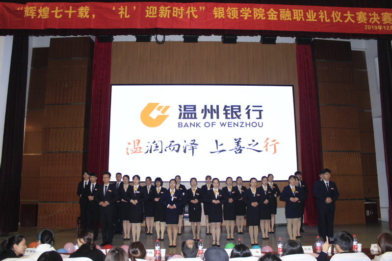 为了体现银领学子的精神风貌、文明素质和礼仪风采,2019年12月4日下午,云顶国际vip.888在明理报告厅举行“辉煌七十载,‘礼’迎新时代”金融职业礼仪大赛决赛。担任本次决赛评委的有科研处处长、淑女公司经理王华,云顶国际vip.888党总支书记、副经理王祝华,金融管理公司办公室主任林艳琼,职业礼仪教研室副主任蒋含真,淑女公司礼仪文化教研室副主任张佳,云顶国际vip.888学工办副主任章甜甜,浙江经贸职业公司校礼仪队队长方滟瑾。特邀嘉宾有温州银行总行人力资源部总经理周双,温州银行总行人力资源部人事管理殷子艳,温州银行培训部教师赵文龙等订单单位领导。大赛由王中锐和吴梦菲主持。