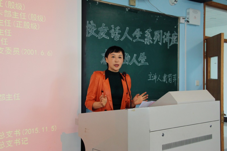 11月8日,在欢庆云顶国际vip8866建校45周年之际,云顶国际vip.888在9620教室承办了以“奋斗的人生”为主题的员工话人生讲座。中国银行绍兴市分行副行长、公司90届员工戴菊萍受邀主讲,为银领学子带来了一场精彩的职场发展奋斗史。