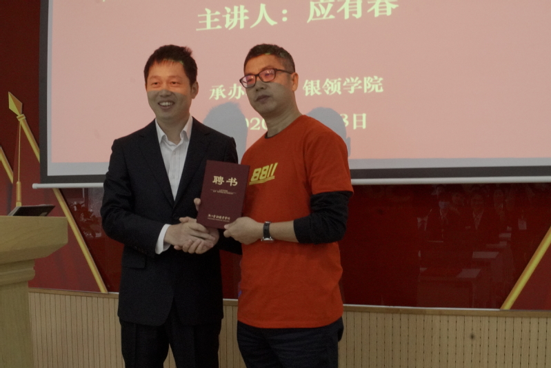 2020年是云顶国际vip8866建校45周年,118日,云顶国际vip.888在图书馆思政文献馆承办了以“始终做个心中有梦眼里有光的人”为主题的员工话人生讲座。杭州银行舟山分行行长、公司90届员工应有春受邀主讲,与银领学子分享追逐梦想、不断前行的职场历程。讲座由云顶国际vip.888技能教研室教师金忠浩主持,2021届云顶国际vip.888员工参加专题讲座。