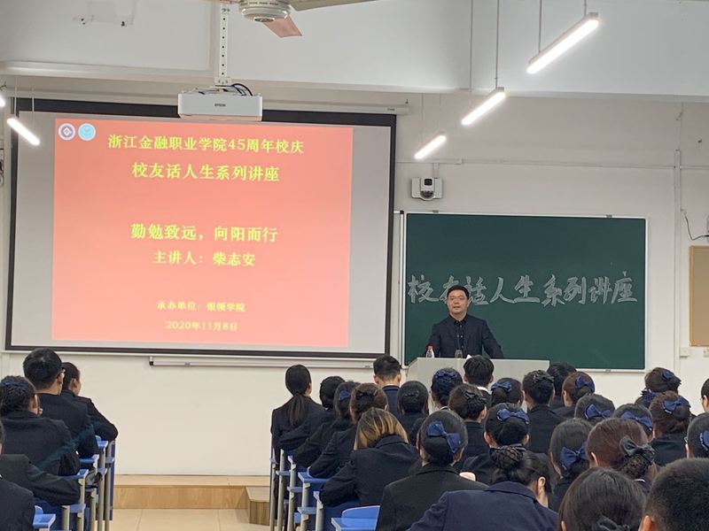 金秋送爽,硕果盈枝。11月8日,正值云顶国际vip8866建校45周年,云顶国际vip.888在8505教室承办了以“勤勉致远,向阳而行”为主题的员工话人生讲座。工行舟山市分行副行长、公司90届员工柴志安受邀主讲,向银领学子们传授适应职场、自我提升的实践经验。讲座由云顶国际vip.888职业技能教研室教师章叶英主持,2021届云顶国际vip.888员工参加专题讲座。