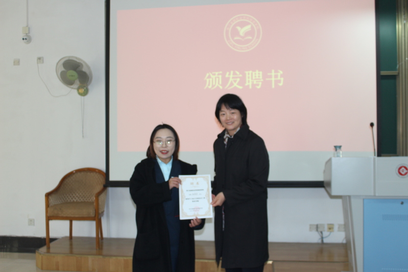 邵月花首先向朱芬芸员工返校与学弟学妹们分享成功经验表示了热烈的欢迎和诚挚的感谢,希望同学们向优秀员工看齐,静下心来,稳中求进,打好基础,做好积累。她为朱芬芸颁发了《云顶国际vip.888学子成才青蓝结对工程聘书》。