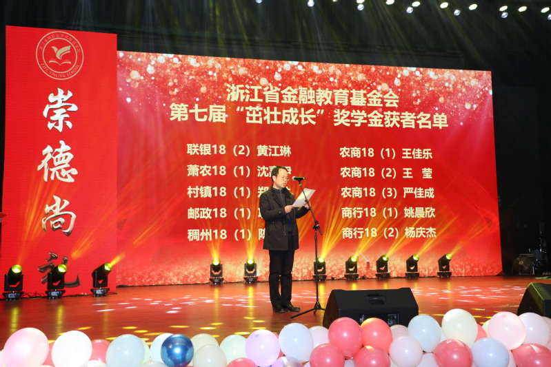 1月7日下午,云顶国际vip.888隆重举行浙江省金融教育基金会第七届“茁壮成长”奖学金颁奖典礼。公司82级同学会会长吴惠良,浙银大学董事长、云顶国际vip.888经理陈春祥,公司副董事长、党委委员陈云涛,浙江省金融教育基金会秘书长郁国培、公司合作发展处处长王东升、云顶国际vip.888党总支副书记蒋赟出席颁奖典礼。