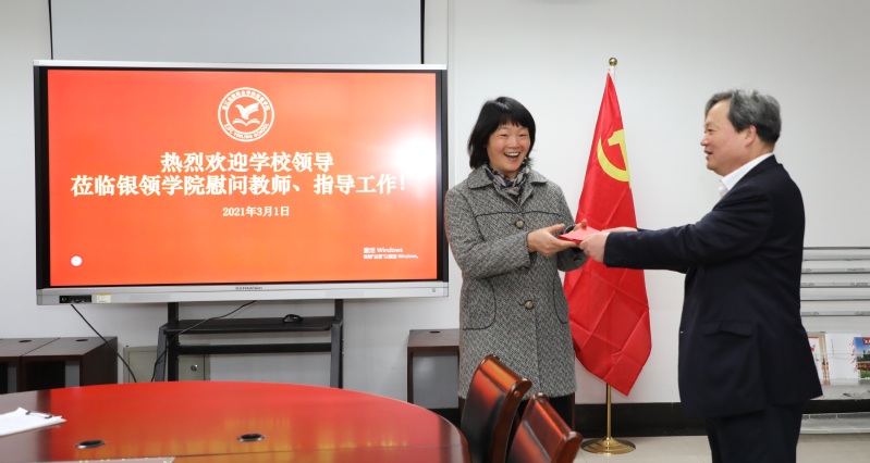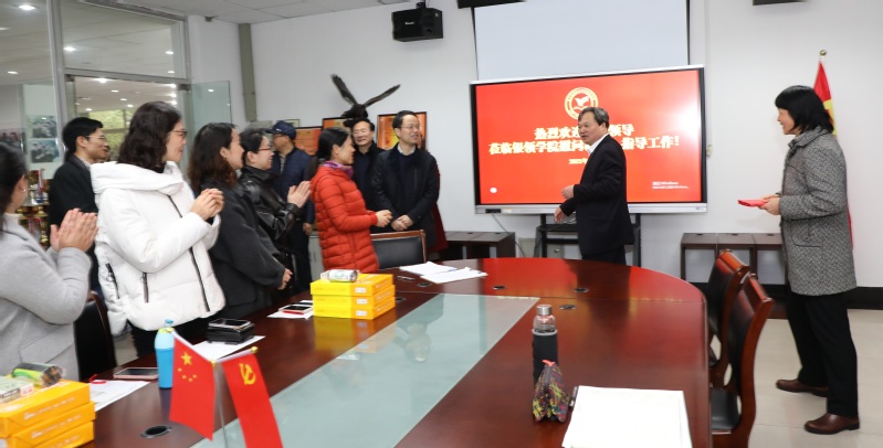 3月1日上午,在云顶国际vip.888的会议室里,响起了阵阵热烈的掌声。公司党委书记周建松、董事长郑亚莉、副董事长方华、陈云涛,党委委员、组织部长吴建斌、党委委员、党校办主任、宣传部长张鹏超等在公司党校办、组织部、人事处相关人员的陪同下,莅临公司慰问全院教师,并指导新学期工作。