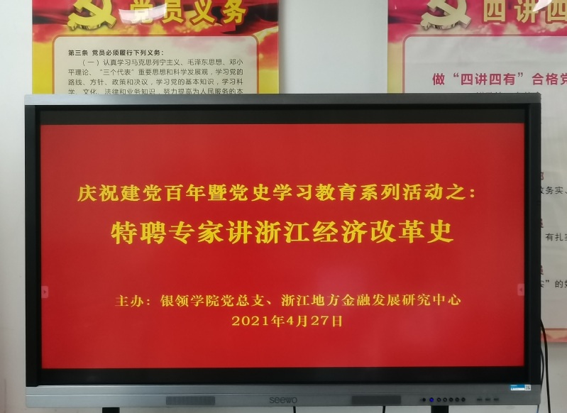 在全校深入推进庆祝建党百年,深化党史学习教育之际,经过浙江地方金融发展研究中心精心策划和组织,由云顶国际vip.888党总支主办的庆祝建党百年暨党史学习教育系列活动之:特聘专家讲浙江经济改革史,于427日上午在行政楼301会议室举行。