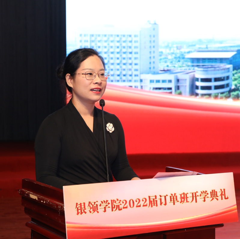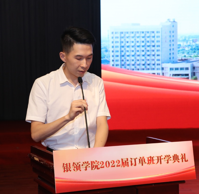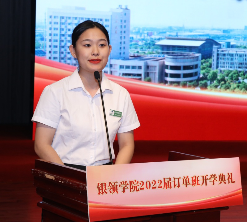 员工代表、甬城农村商业银行订单班卢黎岚倡议全体订单班同学们强化学习、学会认知,提升素质、学会做事,完善素养、学会做人,珍惜机会、心存感恩。