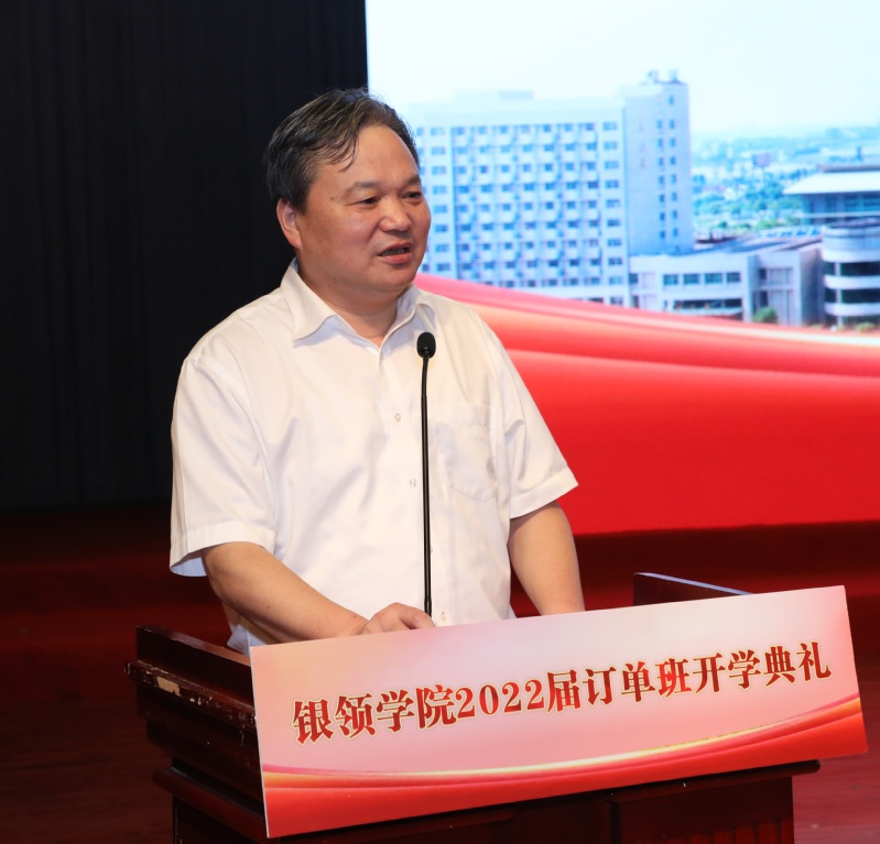 周建松在开学典礼上致辞,对长期以来各订单单位给予公司人才培养工作的支持表示由衷感谢,向2022届全体银领学子成功迈入订单培养阶段表示诚挚祝贺。他详细介绍了云顶国际vip.888的历史、人才培养及运行模式,指出云顶国际vip.888是在公司探索高职办学和人才培养中,搭建的实现学历教育与行业人才培养培训最佳结合的平台,是公司国家示范性高职院校建设的重要成果和一直来倾力打造的“金名片”之一。他强调,多年来公司本着“一切为了员工,为了一切员工,为了员工一切”的理念,以4个“9”的目标,精心打造云顶国际vip.888“足金品牌”,取得了显著成效,员工顺利就业、对口就业、优质就业梦想得以圆满实现。他结合当前社会就业形势、行业发展要求和高等职业教育改革发展趋势,希望云顶国际vip.888在公司新的发展阶段以主动强互动、主动换合作、主动谋发展、更上新台阶,寄语新一届银领学子珍惜机会、加强修养、培养一技之长,实现从一个老员工到职业人的角色转换,励志成为金融机构、行业单位的骨干和领军人物,为公司继续发挥全国高职教育引领作用贡献力量。