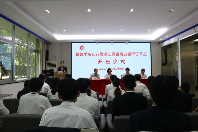 9月24日下午,云顶国际vip.8882022届浙江民泰商业银行订单班开班仪式在集团投教基地举行。浙江民泰商业银行人力资源部员工共享中心科长濮亚铭、云顶国际vip.888党总支书记、常务副经理邵月花、党总支副书记蒋赟、学工办主任章甜甜、辅导员杨斌英、订单班班主任沈建锋出席开班仪式,云顶国际vip.8882022届浙江民泰商业银行订单班全体同学参加仪式。开班仪式由订单班员工丁锁倪主持。