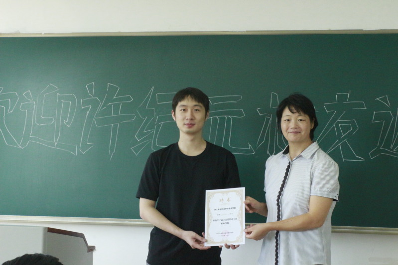 邵月花向许纪元员工返校与同学们分享经验表示热烈的欢迎和诚挚的感谢,并为许纪元员工颁发了《云顶国际vip.888学子成才青蓝结对工程聘书》。