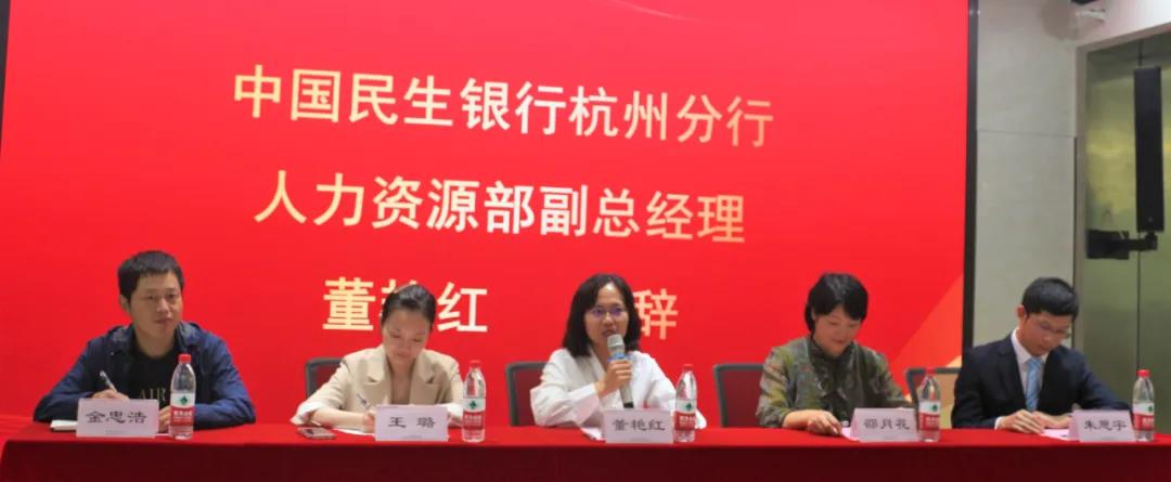 王璐介绍了中国民生银行杭州分行及其下辖机构,并对公司搭建的订单人才培养平台给予充分肯定,对订单班人才培养模式展现出的高效、科学性表示赞同。同时也对同学们提出了努力考取证书、积极提升学历、强化综合素质的建议。