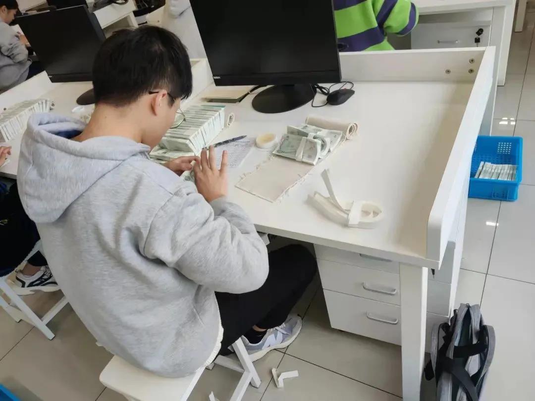 单指点钞比赛中,选手们用娴熟的指法快速拨动着手上的钞券,快速而不忙乱。拆把、清点、计数、墩齐、扎把每个环节做得规范到位,他们的双手就像弹钢琴一样迅速而又准确。