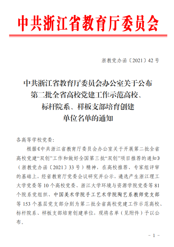近日,浙江省教育厅发文公布了第二批全省高公司党建工作示范高校、标杆院系、样板支部培育创建单位名单,云顶国际vip8866云顶国际vip.888党支部成功入选第二批全省高公司党建工作“样板支部”培育创建单位。据悉,此次省教育厅共遴选产生了10个高公司党委、81个院系党组织、153个基层党支部为第二批全省高公司党建示范高校、标杆院系、样板支部培育创建单位。