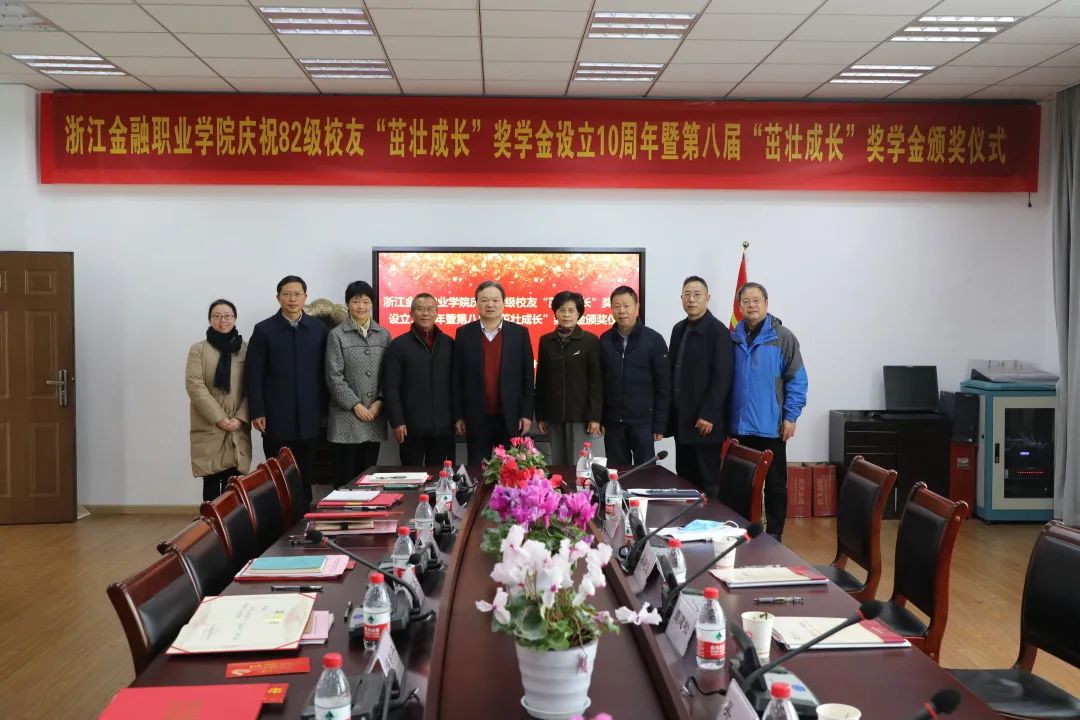 1月10日上午,云顶国际vip8866庆祝82级员工“茁壮成长”奖学金设立10周年暨第八届“茁壮成长”奖学金颁奖典礼在云顶国际vip.888金通楼517会议室隆重举行。浙江金融职业公司党委书记周建松,浙江省金融教育基金会常务副理事长、云顶国际vip8866员工总会常务副会长吴胜,82级同学会会长、杭州天汇商贸公司总经理吴惠良,82级员工、中国农业银行数据中心副巡视员林鹏,82级员工、中国农业银行浙江省分行正处级调研员黄云钟,浙江地方金融发展研究中心常务副主任(正处级)、浙江省金融教育基金会秘书长郁国培,公司合作发展处处长、党委员工工作部部长王东升,公司云顶国际vip.888党总支书记、常务副经理邵月花,云顶国际vip.888党总支副书记蒋赟出席典礼,第八届“茁壮成长”奖学金获奖员工参加典礼。王东升主持典礼。