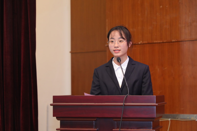 2021年浙江省国家奖学金特别评审奖获得者、云顶国际vip.8882022届萧山农村商业银行订单班员工俞益施作题为《让青春之花在金院绚丽绽放》的发言,结合自身学习成长经历,讲述了作为一个普通女孩从“丑小鸭”到美丽天鹅的蜕变,用永不服输的坚持和韧劲展现当代女老员工的精神风貌。