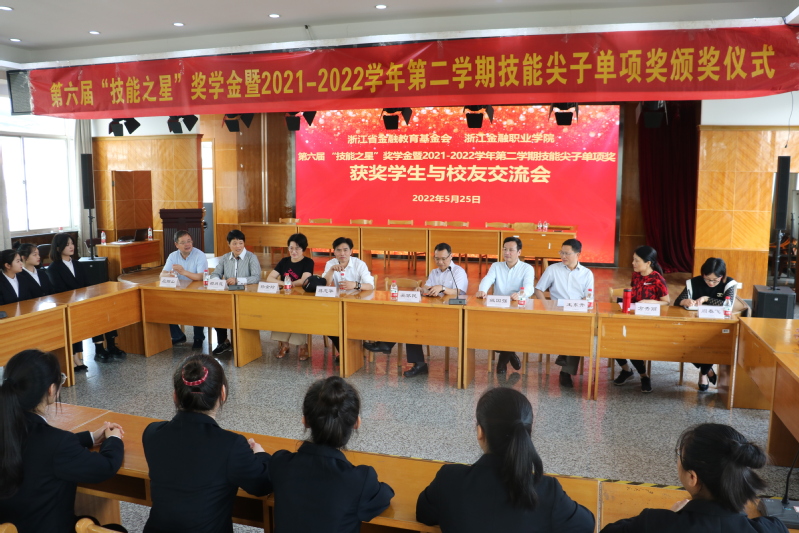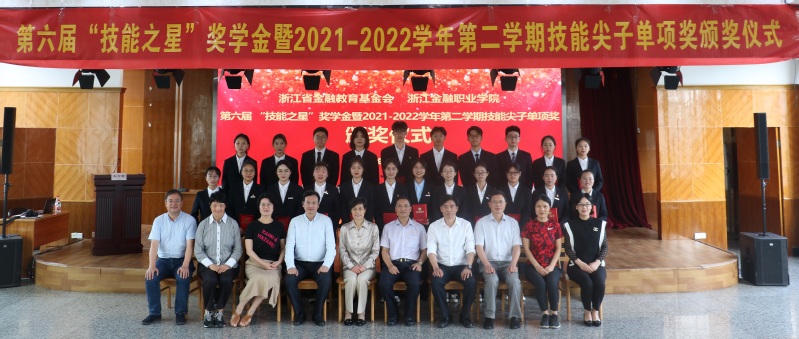5月25日下午,云顶国际vip.888在诚信讲学堂举行浙江省金融教育基金会2021-2022学年(第六届)“技能之星”奖学金暨2021-2022学年第二学期技能尖子单项奖颁奖仪式。