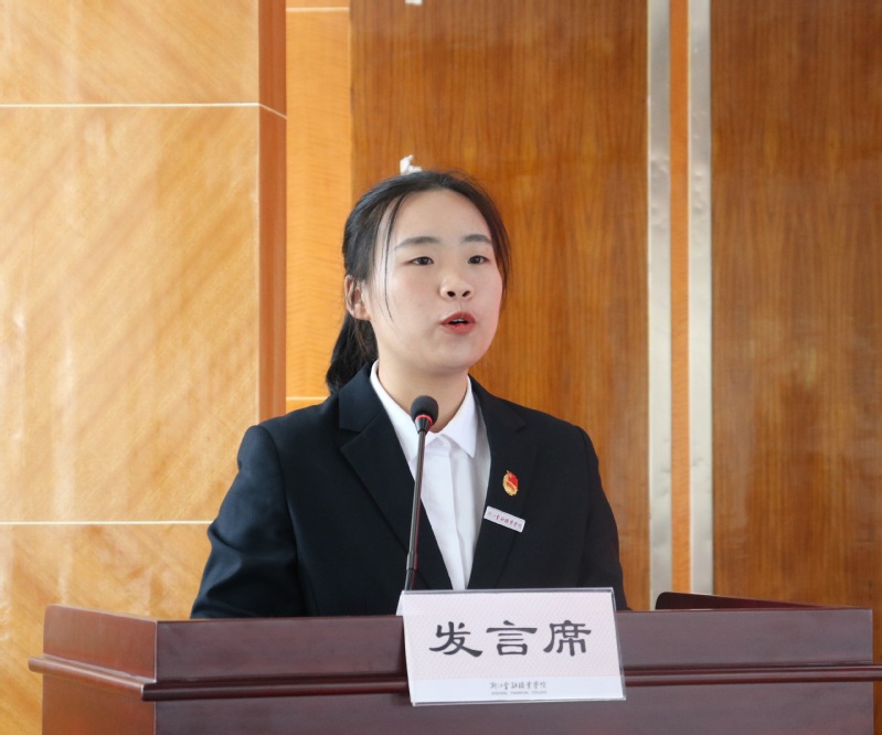 吴胜在仪式上讲话,代表基金会向捐赠设立奖学金的全体86届员工表示感谢,对获奖员工表示祝贺。她指出,奖学金设置符合国家职业教育发展要求、公司发展需求和员工价值实现方向。饱含了86届全体员工感谢母校,感恩老师,支持教育事业发展,助力学弟学妹们成长成才的深情厚谊。她殷切希望获奖员工以获奖为契机和动力,勤练职业技能,提升职业发展竞争优势,将高水平职业技能成为自身人生发展道路上一个很好的突破口;要珍惜身处的这美好和伟大的时代,要时刻怀有感恩之心,感恩社会提供的关爱,感恩前辈铺设的发展道路和搭建的成长平台,感恩公司给予的悉心教育;要以实际行动践行这份初心,发挥引领作用,带动更多的同学,创造更多优异成绩,为校争光。