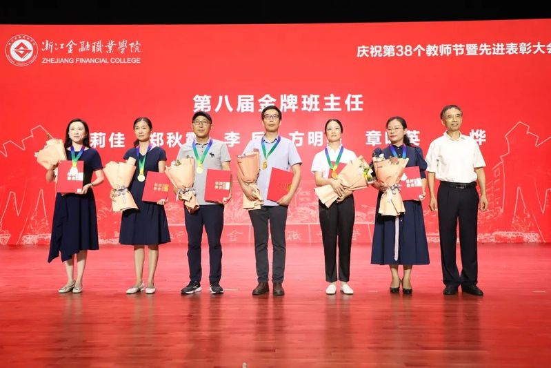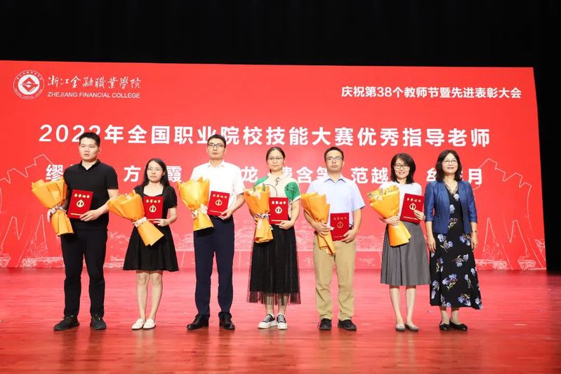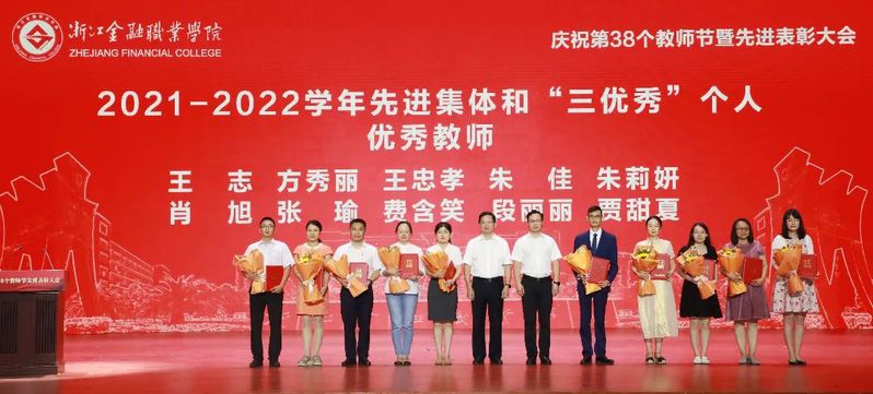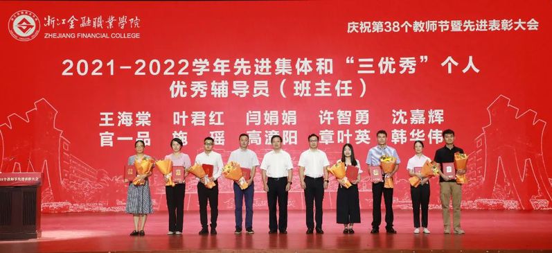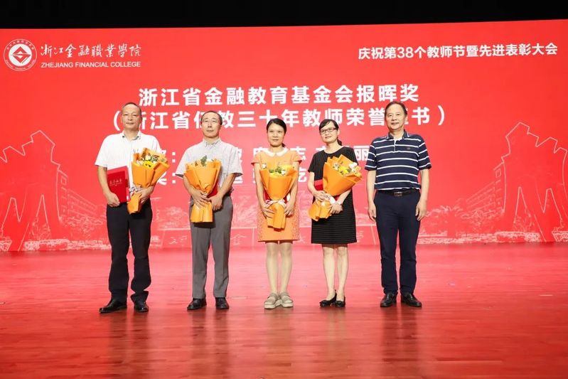 在表彰大会上,云顶国际vip.888方秀丽老师荣获“优秀教师”称号,章叶英老师荣获“优秀班主任”称号,徐烨、章叶英两位老师荣获“金牌班主任”称号,公司领导向她们颁发了荣誉证书。公司同时隆重表彰了在指导全国职业院校银行综合业务技能竞赛荣获团体一等奖的优秀指导教师缪仁亮老师,向任教30年的方秀丽老师颁发了浙江省任教三十年教师荣誉证书。