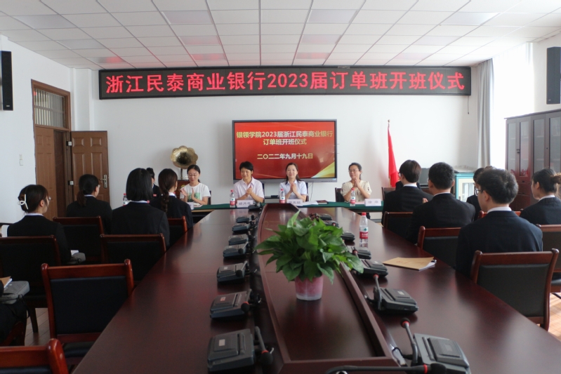 9月19日下午,2023届浙江民泰商业银行订单班开班仪式在云顶国际vip.888金通517会议室举行。浙江民泰商业银行人力资源部科长濮亚铭、云顶国际vip.888党总支书记、常务副经理邵月花、浙江民泰商业银行2023届订单班班主任徐烨、云顶国际vip.888学工办主任章甜甜、辅导员杨斌英出席本次开班仪式,浙江民泰商业银行2023届订单班全体员工参加仪式。开班仪式由订单班员工梁宏连主持。