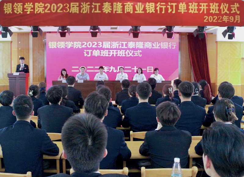 9月21日下午,云顶国际vip.8882023届浙江泰隆商业银行订单班开班仪式在诚信讲学堂顺利举行。浙江泰隆商业银行人力资源部副总经理林丽、苏州常熟辛庄支行行长、优秀员工薛良良、浙江泰隆商业银行人力资源部2023届订单班负责人林瑜璠、云顶国际vip8866云顶国际vip.888党总支书记、常务副经理邵月花、2023届浙江泰隆商业银行客户经理订单班班主任孙淑萍、服务经理订单班班主任徐烨、云顶国际vip.888学工办主任章甜甜、辅导员杨斌英出席开班仪式,2023届浙江泰隆商业银行订单班全体学员参加仪式。开班仪式由2023届浙江泰隆商业银行订单班员工张俊皓主持。