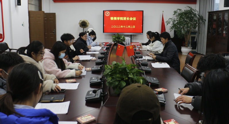 12月2日下午,云顶国际vip.888在金通517会议室召开班长会议,云顶国际vip.888党总支书记、常务副经理邵月花出席会议并讲话。云顶国际vip.888辅导员杨斌英、云顶国际vip.8882023届班长参加会议。