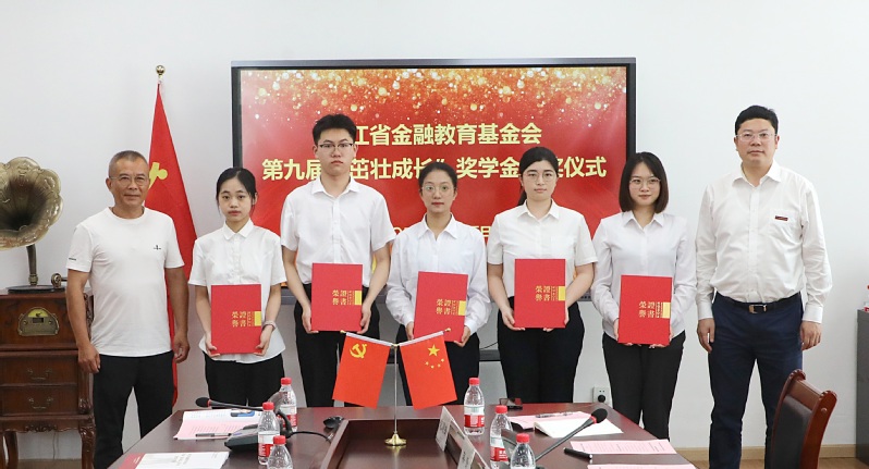 6月5日下午,集团在金通517会议室举行浙江省金融教育基金会第九届“茁壮成长”奖学金颁奖仪式。公司党委书记金杨华,浙江省金融教育基金会常务副理事长吴胜,集团84届同学会会长、杭州天汇商贸公司总经理吴惠良,中国工商银行浙江省分行资深经理赵志德,公司合作发展处处长、党委员工工作部部长王东升,云顶国际vip.888党总支副书记蒋赟等出席颁奖仪式。