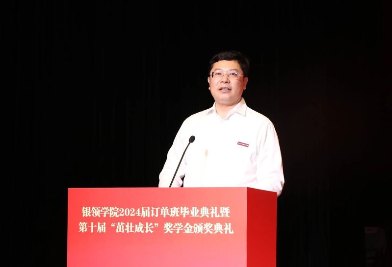 吴惠良代表82级员工讲话,表达了对母校的感恩之情,讲述了82级全体员工捐资设立“茁壮成长”奖学金的初衷。他表示,在创建中国金融业最有影响力的高水平职业大学的宏伟目标指引下,每一位学子都是公司职业教育办学成果的最佳展示,是赓续公司“金融黄埔”的薪火相传者。他希望同学们树立远大理想,坚定信念;练就过硬本领,提升综合素质和职业竞争力;锤炼品德修养,树立良好形象;不忘感恩,在奋斗中实现人生梦想。