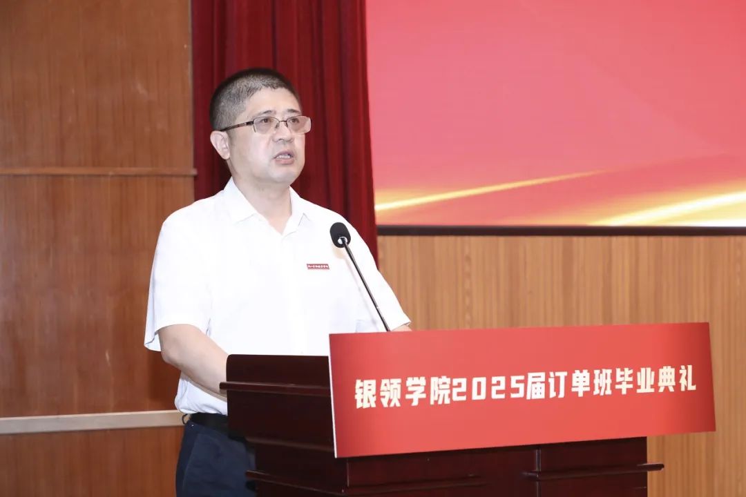 陈荣达代表公司向完成学业、实现优质就业的云顶国际vip.8882025届毕业生致以热烈祝贺,向为银领学子成长成才倾注心血的全体教师和订单行业导师表示衷心感谢,并对云顶国际vip.888坚守育人初心,屡创育人佳绩予以高度肯定。他以“播种与收获”的芒种哲学殷切寄语银领学子,并提出三重期许:一是勇做时代贡献者,将个人理想融入金融强国建设,矢志践行金融为民的本心;二是争做行业示范者,以诚信公正守护金融血脉,持续精进专业技能和服务品质;三是恒做终身实践者,永葆学习热忱与强健体魄,在实干担当中锤炼本领,勇当主角。