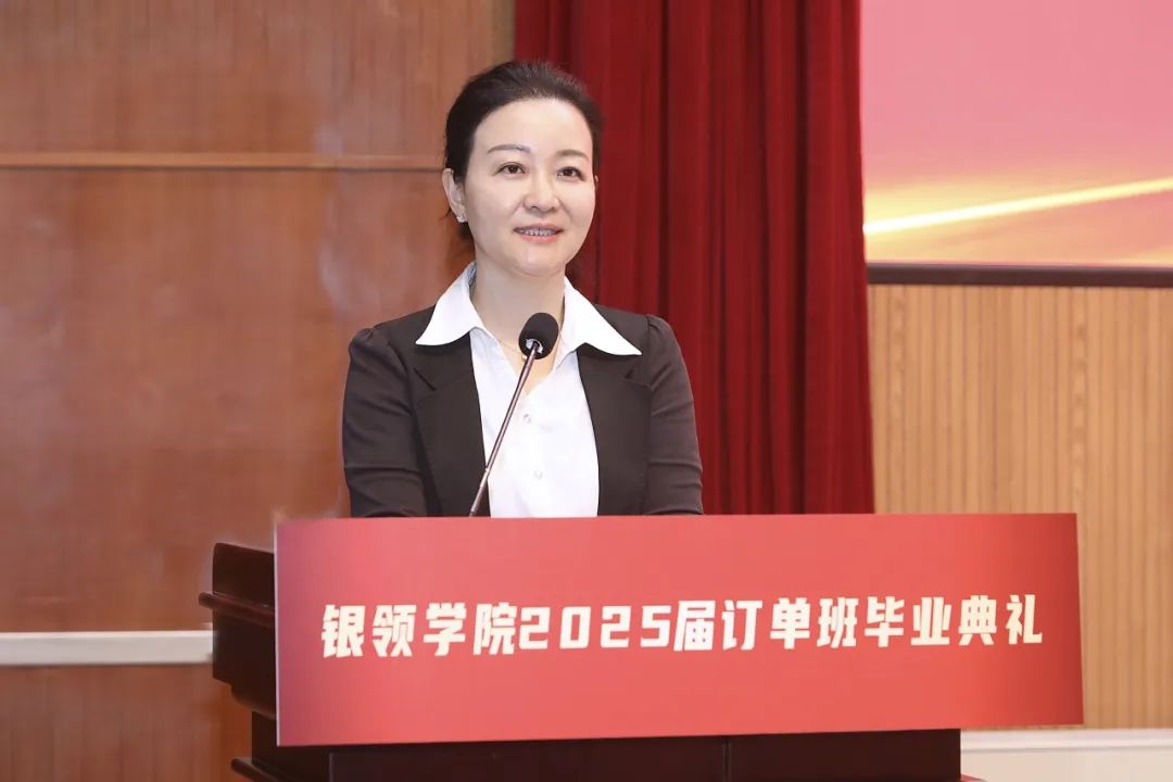毛夏红则以“三心”相赠,即坚守“金融为民”的初心、秉持“终身学习”的恒心、常怀“饮水思源”的感恩心。她强调,扎实的技能水平和专业素养,终将成为银领人驰骋职场的核心底气。她殷切期望银领毕业生能牢记“勤、廉、和”三字箴言——以勤立业,夯实发展根基;以廉御险,筑牢职业底线;以和聚力,共创美好未来。